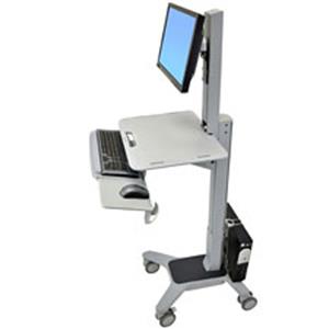 Includes cart, LCD pivot, integrated worksurface, keyboard tray with left/right mouse tray, wrist rest, mouse holder, cable storage box, CPU holder, four dual casters (two locking)