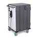 Includes top shelf, handle, locking door latch w/ padlock bracket and two-point lock mechanism, cord wrap, 12' (3.5 m) power cord, adjustable device bays, cord pass-through slots, cable channels, adjustable-height shelves, 4" casters (2 directional-lock and 2 total-lock), external power receptacles, locking IT area, internal power receptacles