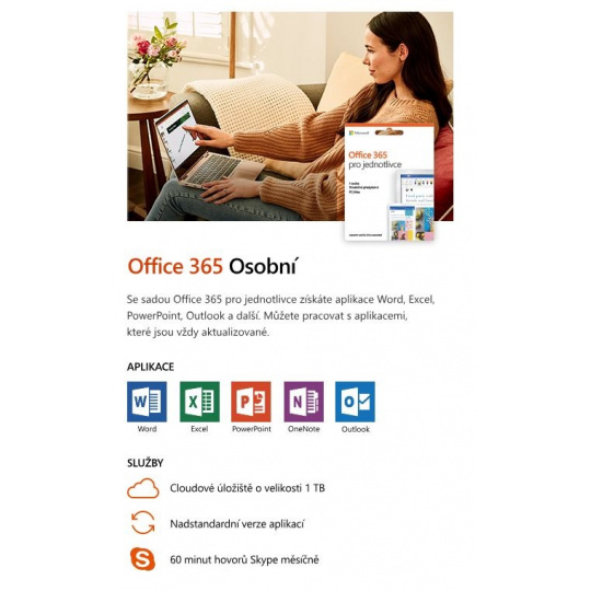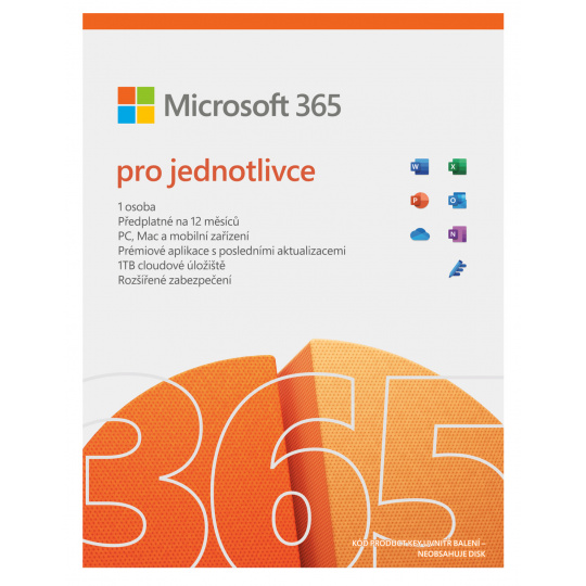 Microsoft 365 pro jednotlivce obsahuje 1 TB cloudového úložiště, pokročilé zabezpečení a inovativní aplikace využívající AI.