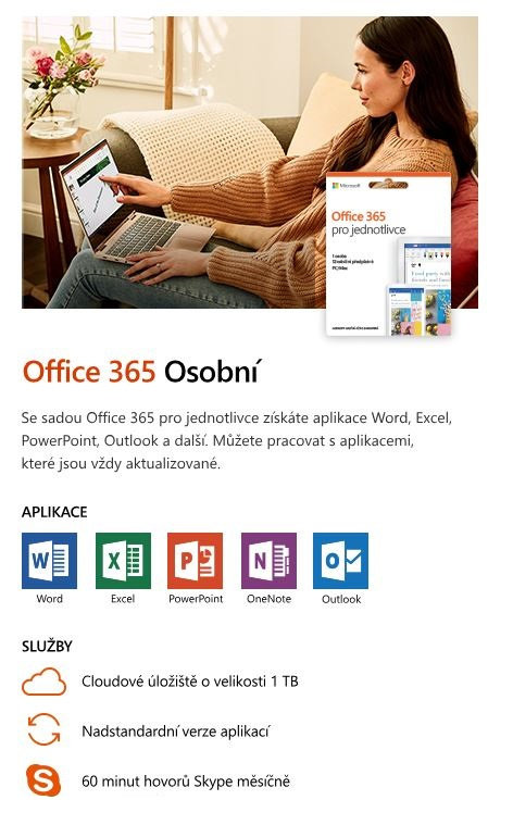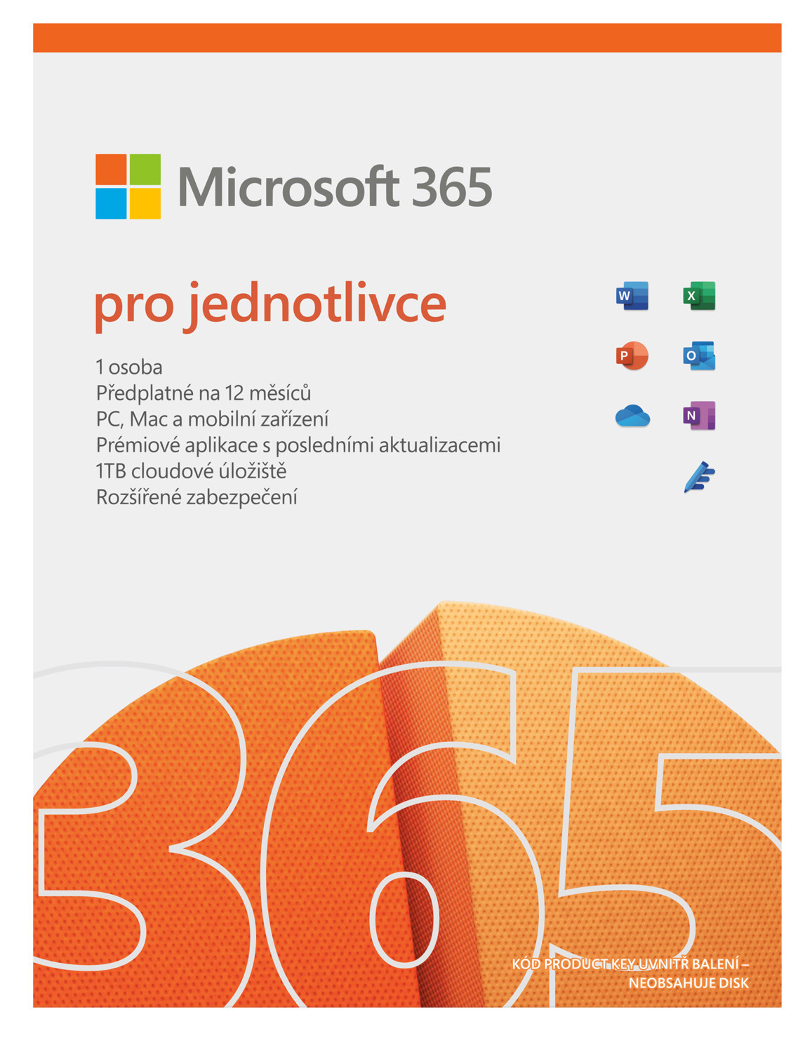 Microsoft 365 pro jednotlivce obsahuje 1 TB cloudového úložiště, pokročilé zabezpečení a inovativní aplikace využívající AI.