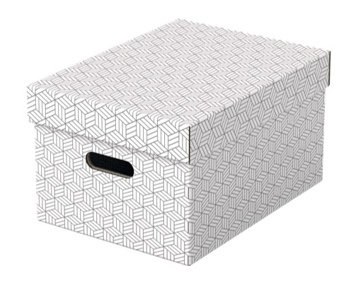 Sada 3 velkých dekorativních lepenkových úložných boxů Esselte Home na dokumenty a větší věci v domácnosti. Rychlé a snadné sestavení.