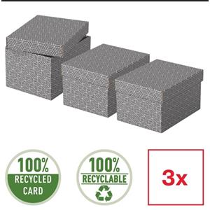 Sada 3 malých dekorativních lepenkových úložných boxů Esselte Home na ukládání drobností nebo i na dárky. Rychlé a snadné sestavení.