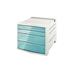 Atraktivní zásuvkový box s barevně průhlednými zásuvkami a se světle šedým tělem. Dvě malé a dvě velké zásuvky se snadným vysouváním pro snadnou organizaci předmětů. Perfektně doplňuje ostatní výrobky z řady Colour'Ice.