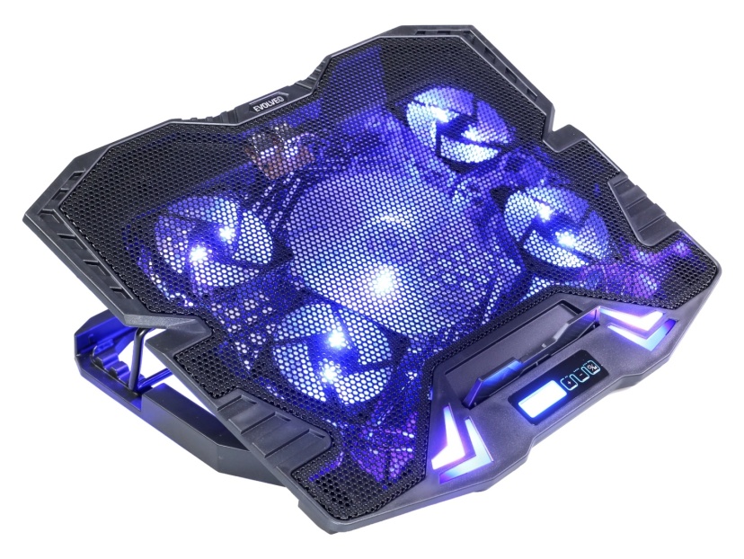 Herní polohovatelný chladící podstavec pro notebooky velikosti 11- 15.6". Regulace rychlosti otáček ventilátoru, displej s ukazatelem rychlosti ventilátorů.