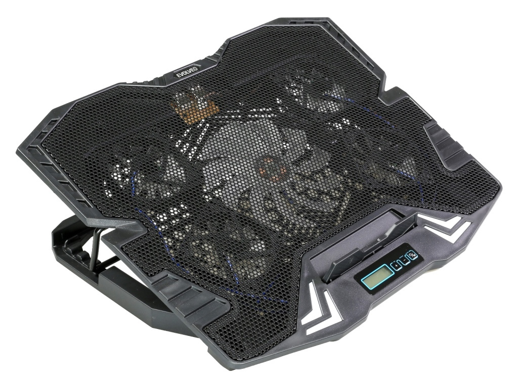 Herní polohovatelný chladící podstavec pro notebooky velikosti 11- 15.6". Regulace rychlosti otáček ventilátoru, displej s ukazatelem rychlosti ventilátorů.