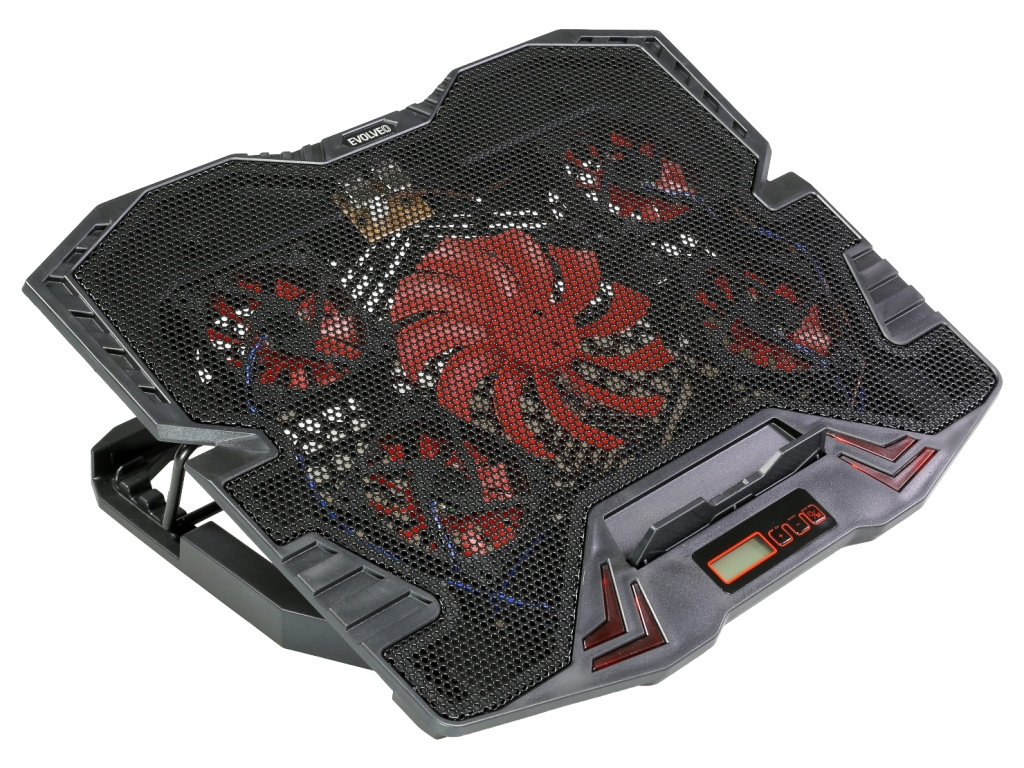 Herní polohovatelný chladící podstavec pro notebooky velikosti 11- 15.6". Regulace rychlosti otáček ventilátoru, displej s ukazatelem rychlosti ventilátorů.