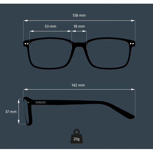 S hmotností pouhých dvacet gramů jsou tyto brýle tak lehké, že je můžete nosit celý den, aniž byste je vůbec vnímali. Měkčené pryžové koncovky navíc zaručují, že se vám nebudou ani při mnohahodinové práci zařezávat za uši. A zárukou vašeho pohodlí je i pružinové uzavírání postranic, které se dokáže přizpůsobit každé hlavě. Brýle EVOLVEO BlueBlock40 nezavírají oči ani před uživateli s atypicky širokou hlavou. Jejich postranice se totiž mohou vyklopit až o 45 stupňů směrem ven, takže si je pohodlně nasadí skutečně každý.