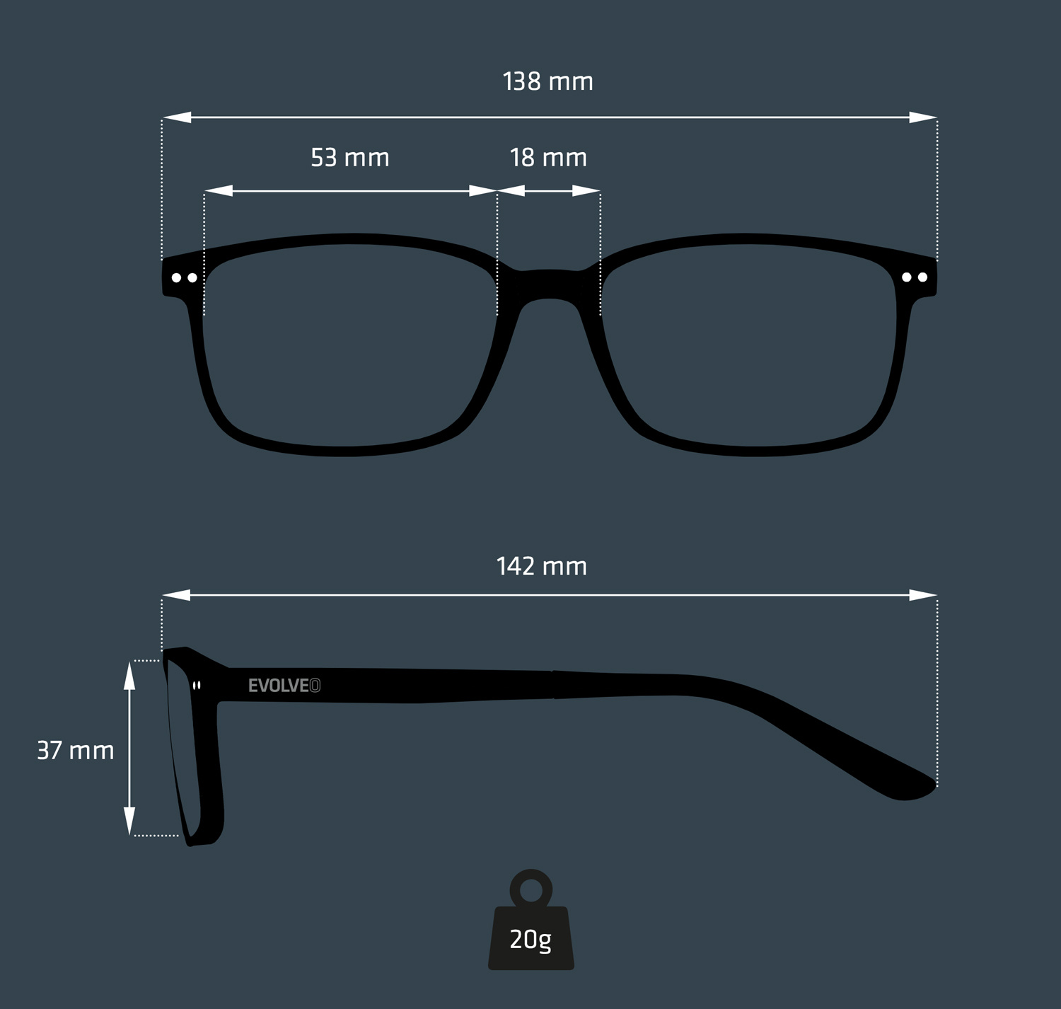 • Hmotnost brýlí: 20 g