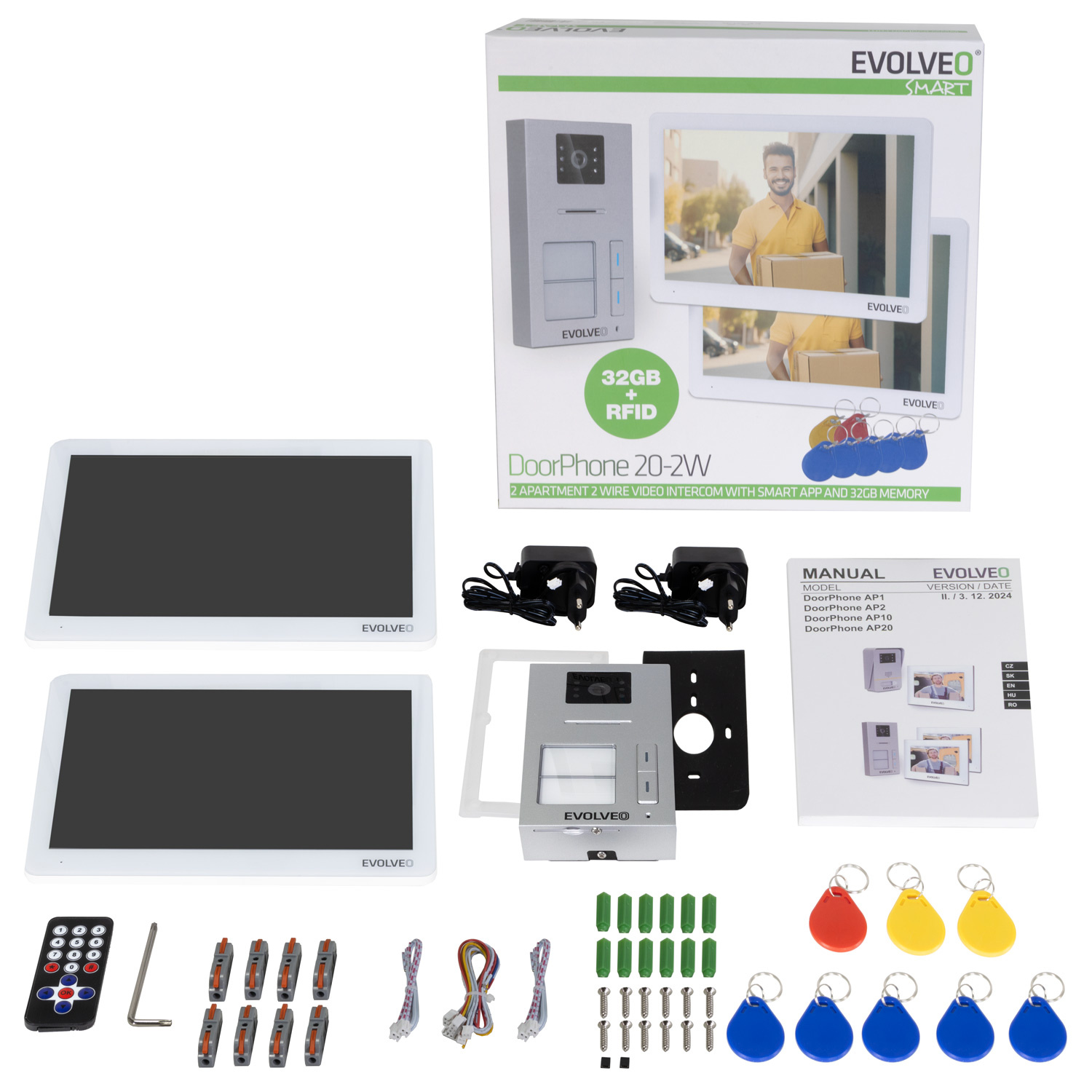 ManuályEVOLVEO DoorPhone 20-2W - 2 drátový videotelefon s aplikací pro dvě domácnosti a 32GB pamětí