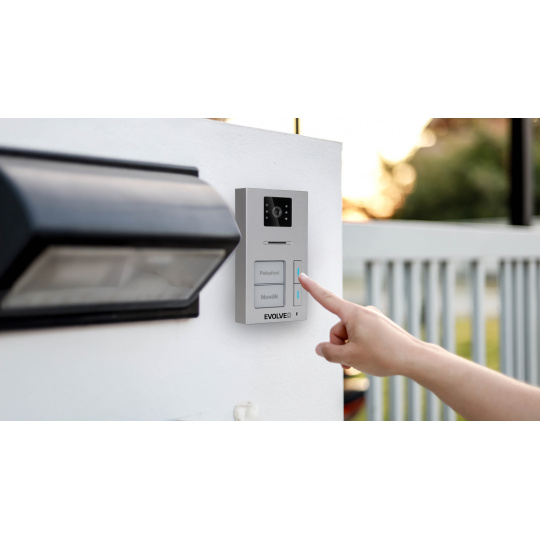 Venkovní panel odolný proti povětrnostním vlivům je vybaven 2 tlačítky a kamerou, pomocí kterých vám hosté mohou zavolat. Když host stiskne tlačítko volání na venkovní stanici, monitor zazvoní, zároveň se na obrazovce zobrazí obraz návštěvníka, vy se rozhodnete, zda dveře otevřete, nebo ne. Tato úžasná funkce vám poskytne kompletní systém kontroly přístupu. Zároveň je možné volat mezi jednotlivými monitory, stačí na monitoru zmáčknout příslušné tlačítko a spustí se hlasový hovor na druhý monitor, který může být umístěný v druhém bytě.