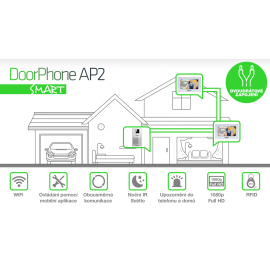 • EVOLVEO DoorPhone AP2-2 drátový videotelefon pro dva byty s aplikací, bílý (PartNo: DPAP2-W)