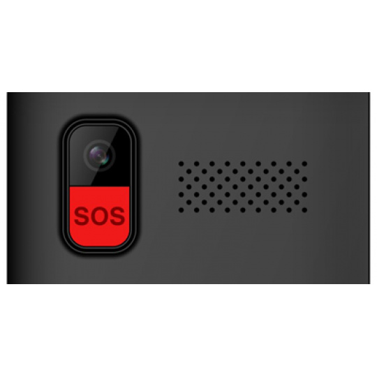 Na zadní straně telefonu se nachází SOS tlačítko, po jehož stisknutí telefon začne automaticky vytáčet předvolená čísla a odešle na ně nouzovou zprávu. Je možno zvolit až pět telefonních čísel, na které bude voláno a zaslána SMS.