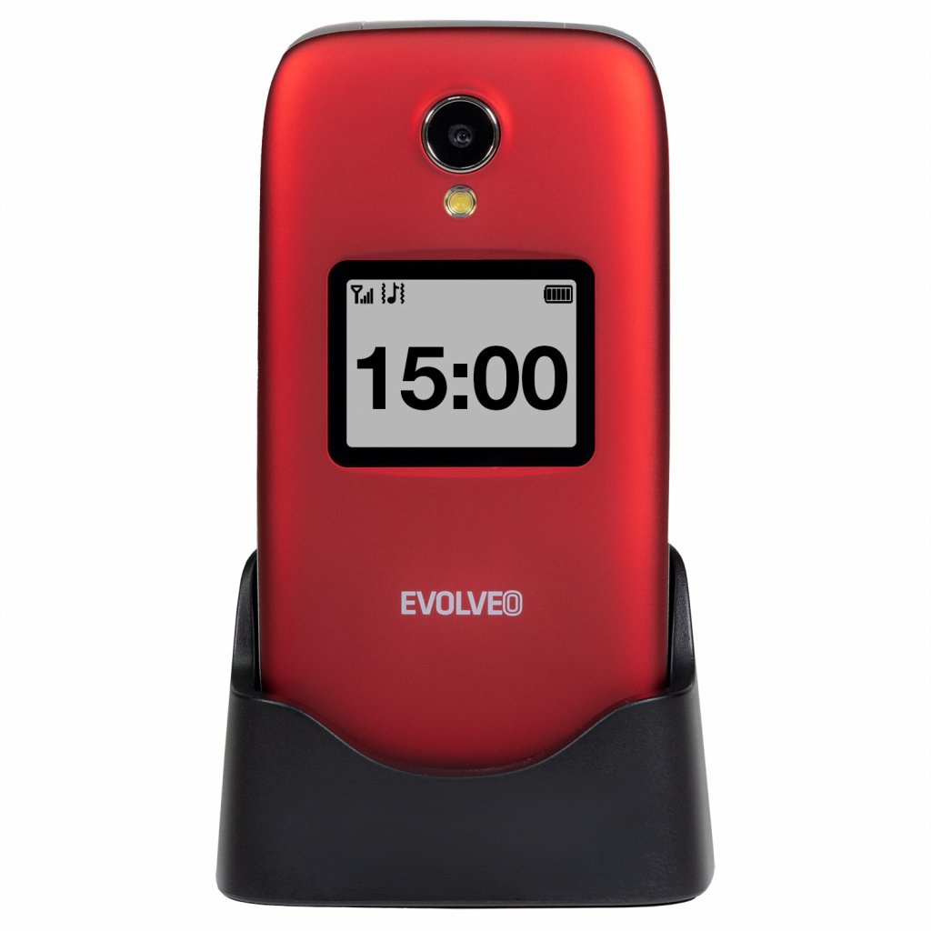 EVOLVEO EasyPhone FS, vyklápěcí mobilní telefon 2.8" pro seniory s nabíjecím stojánkem (červená barv