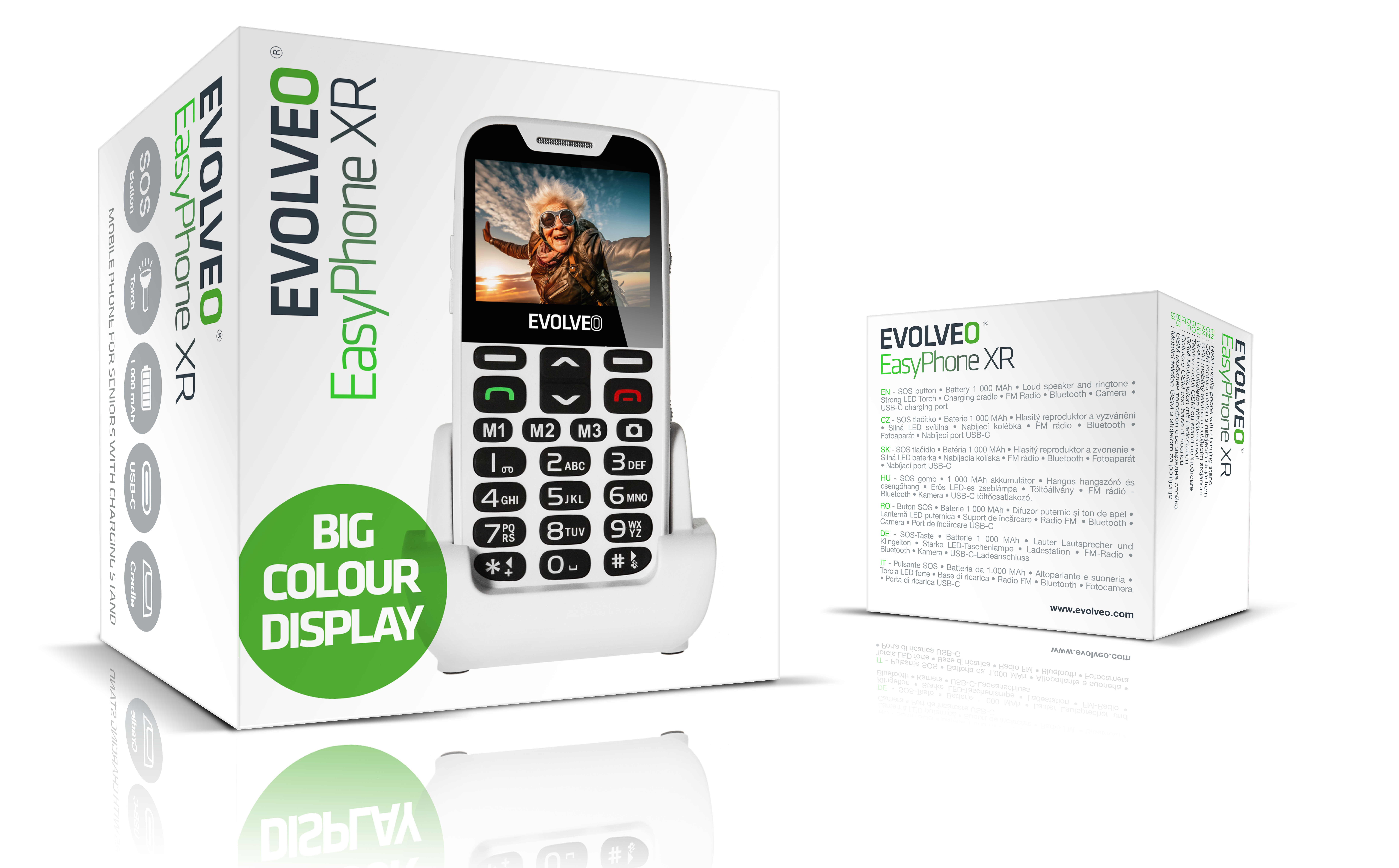 EVOLVEO EasyPhone XR, mobilní telefon pro seniory s nabíjecím stojánkem, bílá