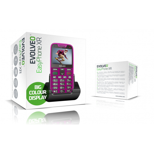 EVOLVEO EasyPhone XR, mobilní telefon pro seniory s nabíjecím stojánkem, růžový