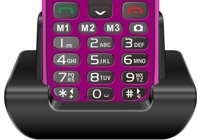 Telefon je dodáván s praktickým nabíjecím stojánkem, do kterého stačí telefon zasunout a nabíjení baterie se spustí automaticky, což usnadňuje a zpříjemňuje každodenní používání. Díky výdrži baterie až 8 dnů je telefon stále připraven k použití, aniž by uživatel musel často hledat zásuvku pro nabíjení