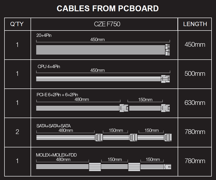 • PCI-E (6+2) +(6+2)pin (450+150mm)