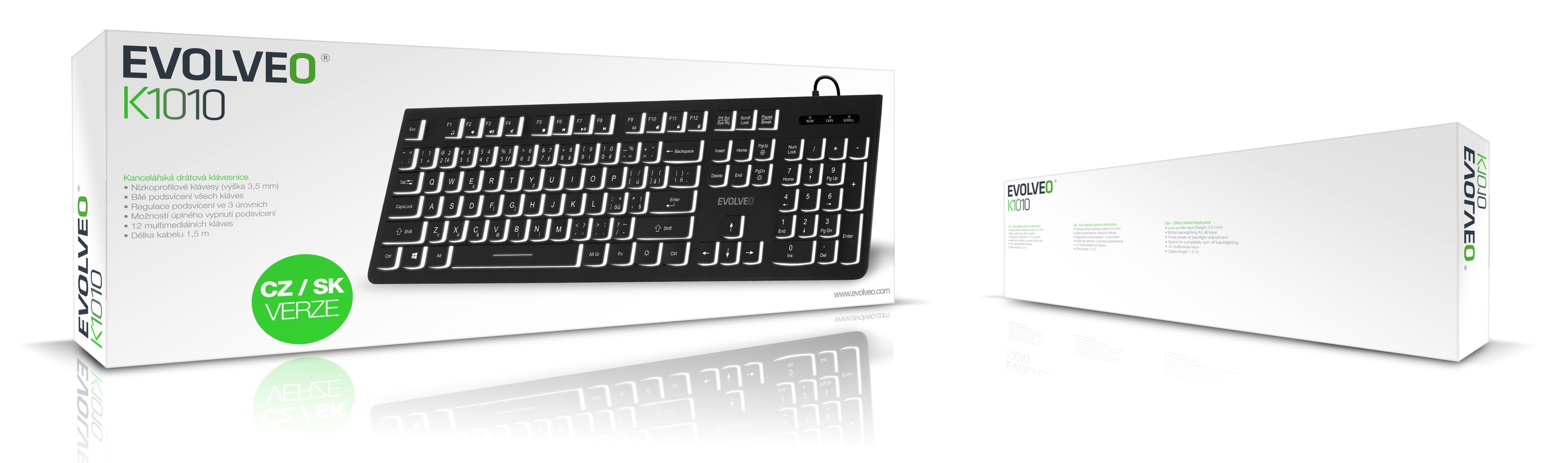 EVOLVEO K1010, klávesnice s bílým podsvícením, CZ+SK, černá