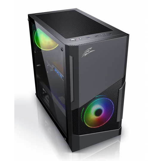 Herní mATX skříň s instalovanými RGB rainbow 120 mm ventilátoremy a bočnicí z temerovaného skla. Skříň je určená pro základní desky podporující platformu Intel i AMD. Mimo formátu mATX je kompatibilní i s formátem Mini ITX. Napájecí zdroj se umísťuje do dolní části skříně. Spodní mřížka je osazena vysouvacím prachovým filtrem. Ovládání ventilátorů je možné pomocí připojení k základní desce.