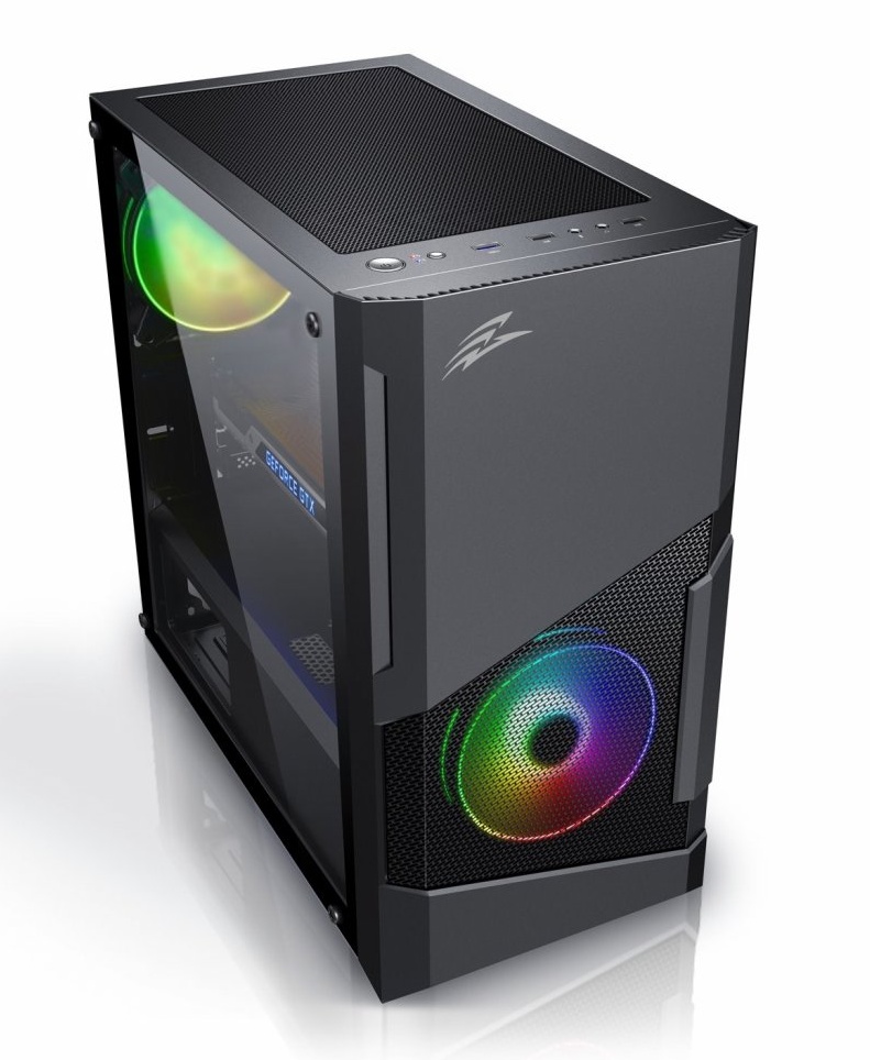 Herní mATX skříň s instalovanými RGB rainbow 120 mm ventilátoremy a bočnicí z temerovaného skla. Skříň je určená pro základní desky podporující platformu Intel i AMD. Mimo formátu mATX je kompatibilní i s formátem Mini ITX. Napájecí zdroj se umísťuje do dolní části skříně. Spodní mřížka je osazena vysouvacím prachovým filtrem. Ovládání ventilátorů je možné pomocí připojení k základní desce.