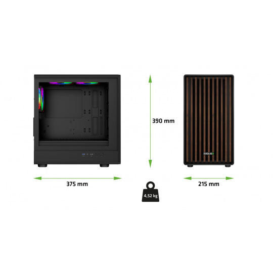 EVOLVEO Panthera, mATX/6x ARGB 120/dřevo+sklo