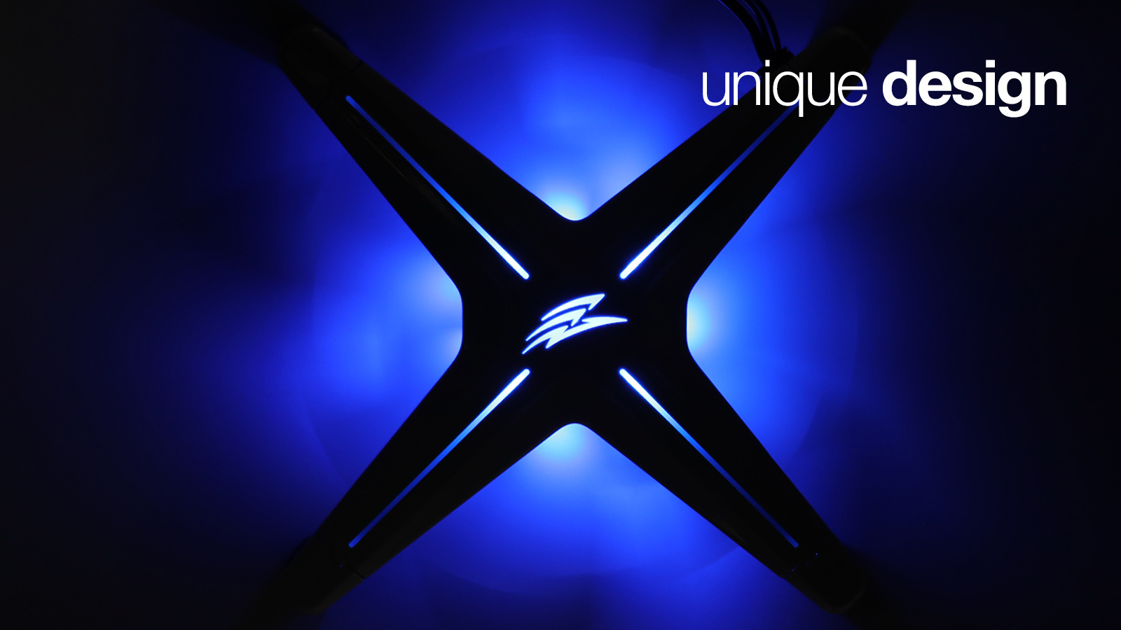 Nový typ ventilátoru s unikátním bezrámečkovým designem a modrým podsvícením. LED diody jsou umístěné v kruzích po obvodu vniřní strany. Speciální tvar lopatek pomáhá zlepšení proudění vzduchu uvnitř počítačové skříně. Instalace ventilátoru pomáhá v chlazení procesoru, grafické karty a dalších komponent. 4pin konektor s možností regulace otáček.