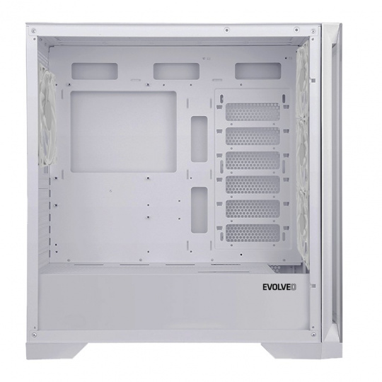 EVOLVEO Ptero Q2W+, 2x čelní panel: sklo/mřížka, 4x vent, case ATX, bílá