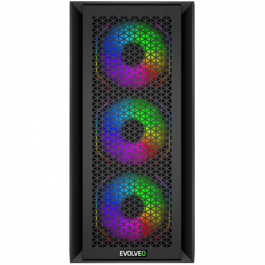 EVOLVEO Rhino, skříň eATX/ATX, 4x ARGB ventilátor 120mm, boční panel temperované sklo + mřížkovaný přední panel
