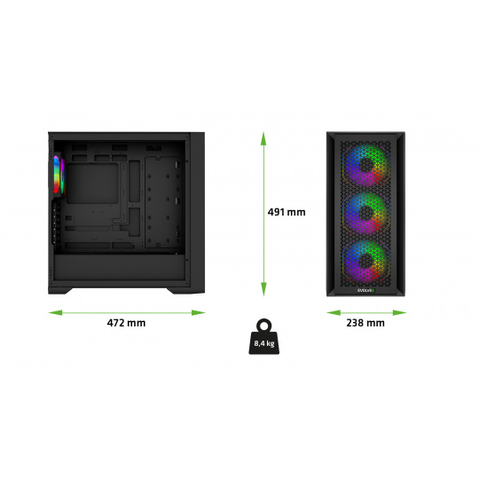 EVOLVEO Rhino, eATX/ATX/4x ARGB/bočnice sklo/mesh
