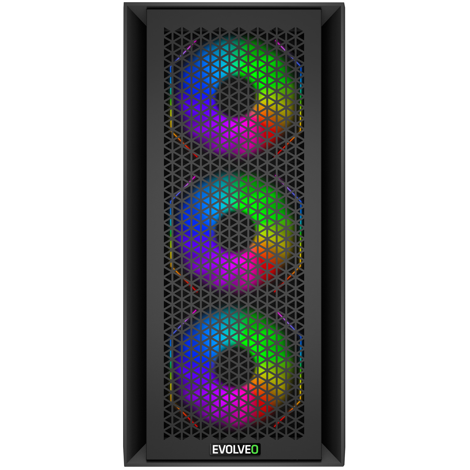 EVOLVEO Rhino, skříň eATX/ATX, 4x ARGB ventilátor 120mm, boční panel temperované sklo + mřížkovaný přední panel