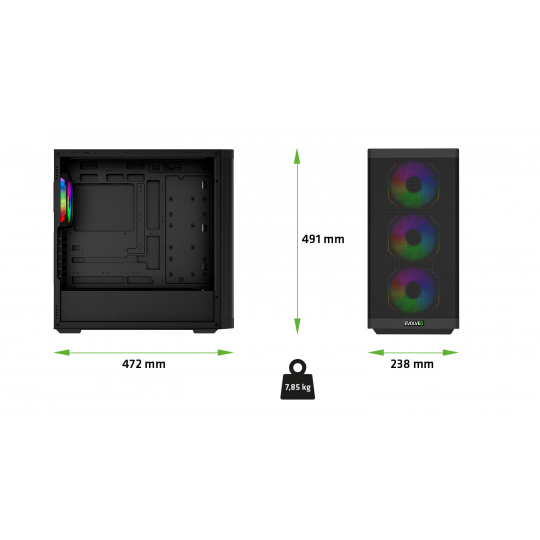 • Rozměry: (š × v × h): 238 × 491 × 472 mm