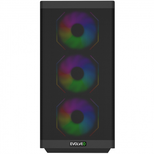 EVOLVEO Scorpio, skříň eATX/ATX, 4x ARGB ventilátor 120mm, boční panel temperované sklo + mřížkovaný přední panel