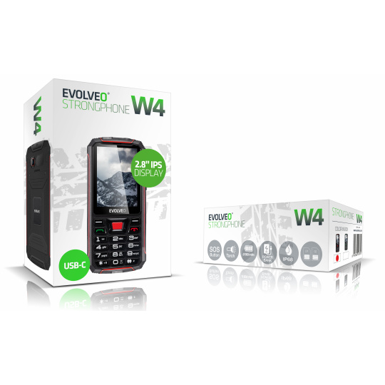 • EVOLVEO StrongPhone W4, vodotěsný odolný Dual SIM telefon, černo-červený (PartNo: SGP-W4-BR)