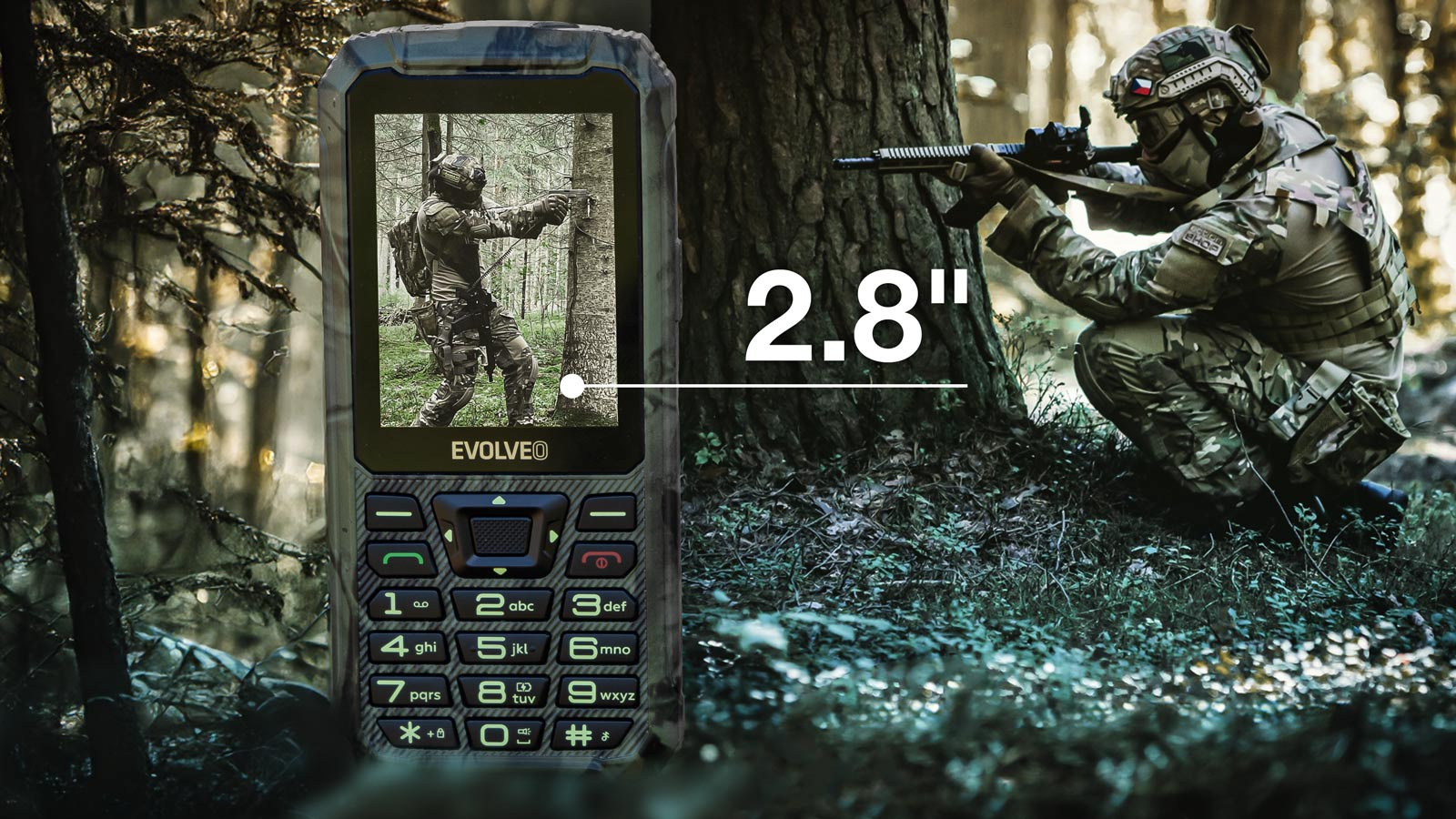 • EVOLVEO StrongPhone Z6, vodotěsný odolný Dual SIM telefon, lovecká kamufláž (PartNo: SGP-Z6-HNT)