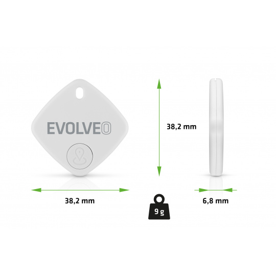 Jedná se o produkt s oficiální certifikací Apple MFi, která představuje pečeť kvality a bezproblémové spolupráce se zařízeními značky Apple – garantováno je vše od bezpečnosti přes funkční kompatibilitu s aplikací Apple FindMy až po budoucí aktualizace. Kromě toho zaručují spolehlivé fungování i evropské certifikace RED a RoHS. Lokátor EVOLVEO TrackTag vyžaduje operační systém iOS (verze 14.5 nebo novější). Jeho uvedení do provozu zvládnete levou zadní – jednoduše ho spárujete se svým zařízením a je aktivní. Žádné stahování speciálních aplikací, žádné složité nastavování. Jde tak o skvělou volbu pro každého, kdo si chce bez starostí zajistit duševní pohodu pramenící z kontroly nad svými věcmi. Specifikace: