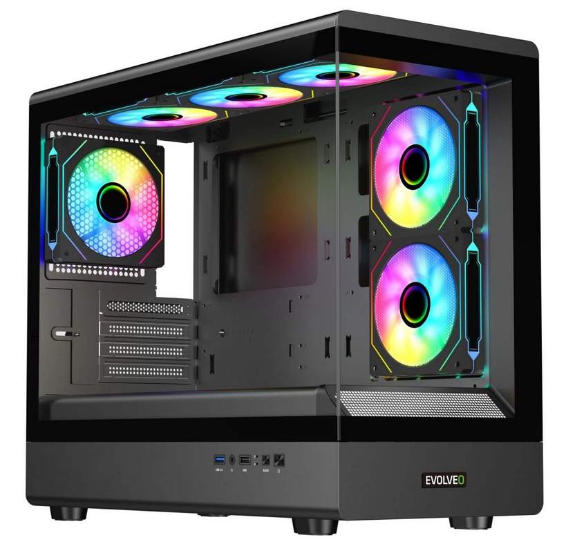 EVOLVEO Ursus, skříň mATX, 6x ARGB ventilátor 120mm, skleněná bočnice + přední panel