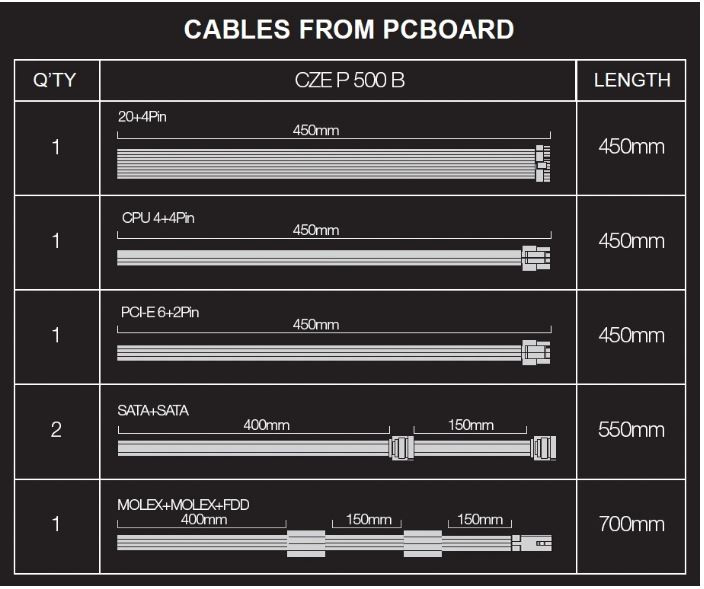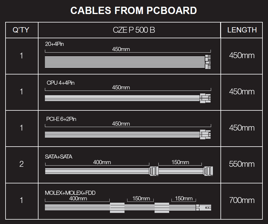• 1x napájecí kabel pro MB 20+4pin