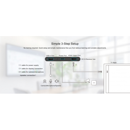 CA200 je vybaven vestavěným kabelem typu C, je kompaktní a přenosný. Není potřeba žádný software – stačí zapojit a jedním kliknutím se připojit, čímž zvýšíte efektivitu schůzek.