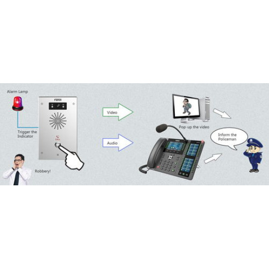 Fanvil i16SV je SIP interkom s vynikajícím vzhledem, integrující audio a video interkom a funkce broadcastingu. Díky prachotěsnému, vodotěsnému a antikoliznímu provedení s krytím IP65 a IK10 jej lze použít v mnoha vnitřních i venkovních scénářích a nabízí uživatelům vynikající komunikační zážitek. Umožňuje montáž na stěnu. Vynikající zážitek s HD audiem na interkomu 16SV, který podporuje širokopásmové kodeky G.722 a Opus. Vestavěné rozhraní audio line-out umožňuje vysílat na aktivní reproduktory. Fanvil i16SV je vybaven 2M pixelovou kamerou, která vám umožňuje při připojení si zobrazit vynikající čistý video obraz na zařízení, která podporují video kodek. Flexibilní konfigurace tlačítka na Fanvil 16SV lze jednoduše provést na webové konfigurační stránce zařízení. Uživatelé mohou uskutečnit tísňový hovor na připravený IP/SIP účet. Fanvil i16SV lze použít k vysílaní lokální hudby a zvuků s TF kartou až do 32G. i16SV umožňuje security propojení a nahlášení poplachu. Zařízení může spustit monitorovaní z videokamery nebo spustit alarm pomocí zkratovacího výstupního portu. Fanvil i16SV obsahuje vstupní a výstupní zkratovací rozhraní k různému použití Zařízení i16S/i16SV je vybaveno stupněm ochrany IP65 a IK10, je prachotěsné, vodotěsné a odolné proti kolizi a má široký rozsah teplot od -30 °C do 60 °C a lze jej použít v mnoha různých scénářích. Hlavní paramentry: Vestavěná HD kamera s infračerveným nočním viděním s kodekem H.264 IP65 vodotěsný a prachotěsný IK10 s robustním tlakově litým hliníkovým rámem Alarm proti neoprávněné manipulaci, pokud je kryt oddělen se současným hlášením do řídicího centra HD hlasová kvalita s vestavěným 3W reproduktorem a akustickým potlačením ozvěny Audio výstupní port, možnost rozšiření o externí aktivní reproduktor. Vestavěné 2 short-in a 2 short-out kontrolní porty Vestavěný slot pro TF kartu pro ukládání dat nebo offline vysílání zvuku. Kompatibilní s hlavními platformami: Asterisk, Broadsoft, 3CX, Metaswitch, Elastix, Avaya atd.