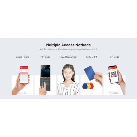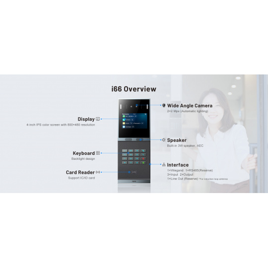 Dveřní interkom i66 s rozpoznáváním obličeje je vybaven 4palcovou barevnou obrazovkou IPS a obsahuje vysoce přesnou technologii rozpoznávání obličeje. Obsahuje detekci živosti proti falšování obrázků, videí a masek, čímž maximalizuje zabezpečení komunity. Navíc podporuje audio a video komunikaci s IP telefony, vnitřními stanicemi nebo prostřednictvím mobilní aplikace. Díky více metodám otevírání dveří je široce použitelný ve scénářích komunit, bytů a kancelářských budov.