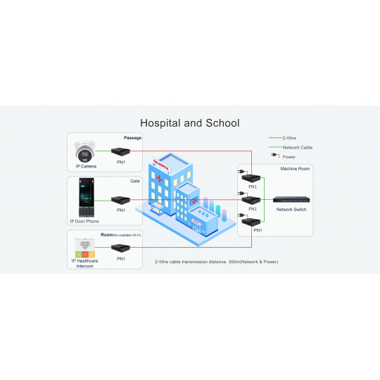 - Použití 2-Wire pro připojení libovolného IP zařízení s podporou PoE
