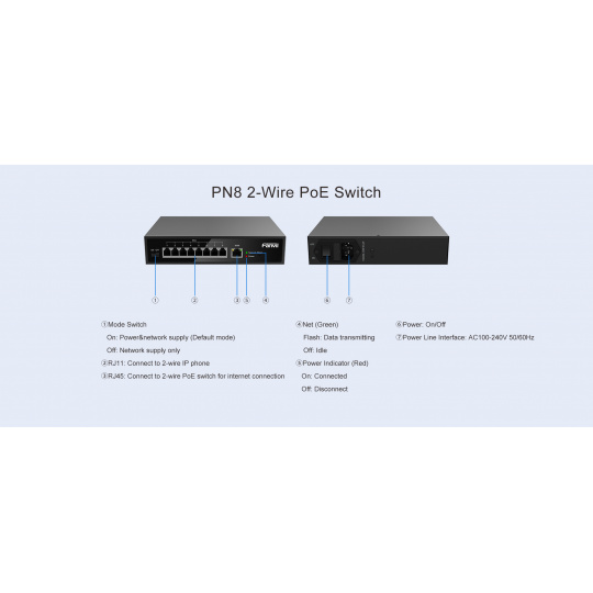 DatasheetFanvil PN8 - 2-drátový PoE Switch, RJ45, 8 x RJ11