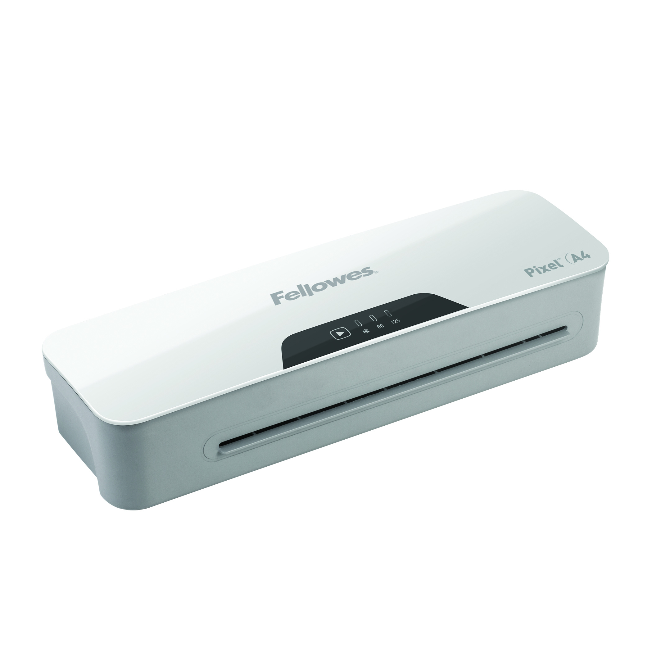 Laminátor Fellowes Pixel A4 s novým atraktivním designem. Umožňuje kvalitní laminaci až do formátu A4 v rozsahu 80-125 mic tloušťky laminovacího filmu včetně laminace fotografií. Maximální tloušťka laminovaného dokumentu je 0,4 mm. Je vhodný pro příležitostnou laminaci v kanceláři.