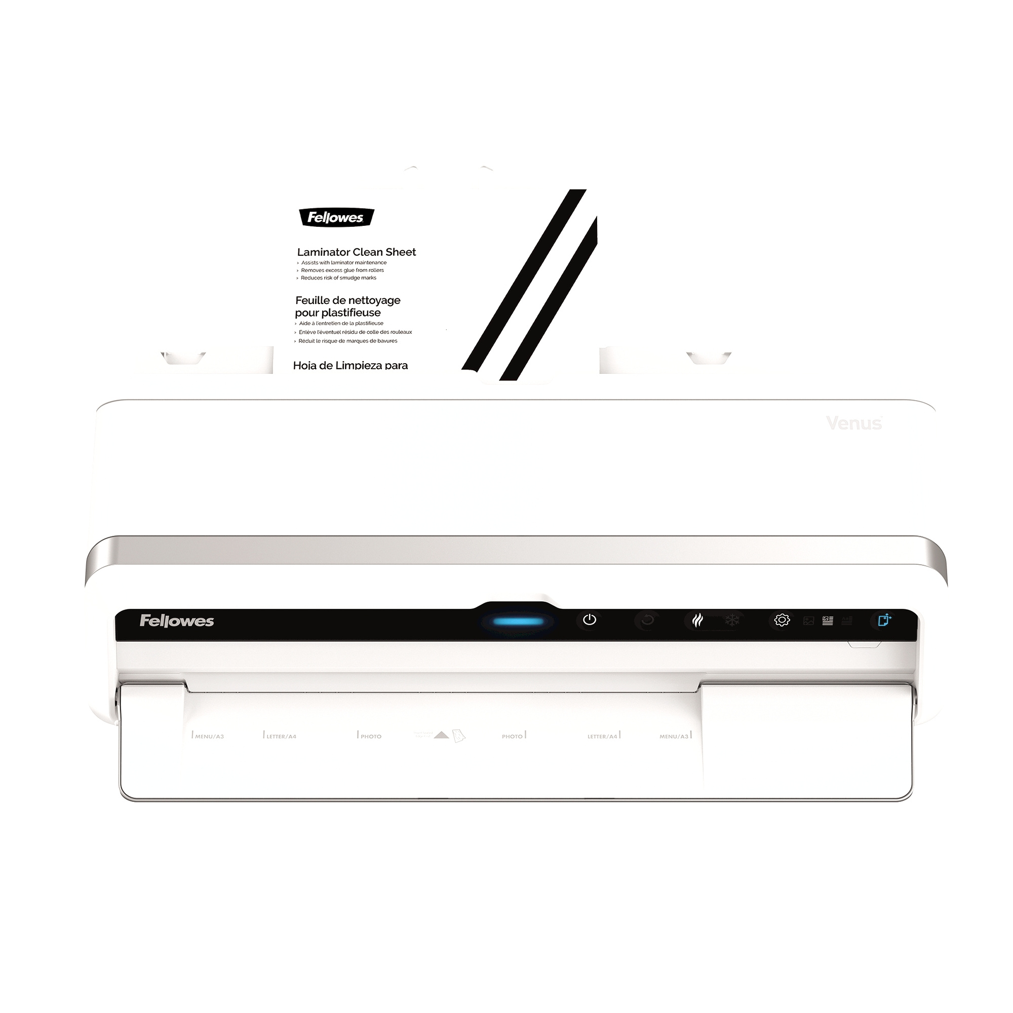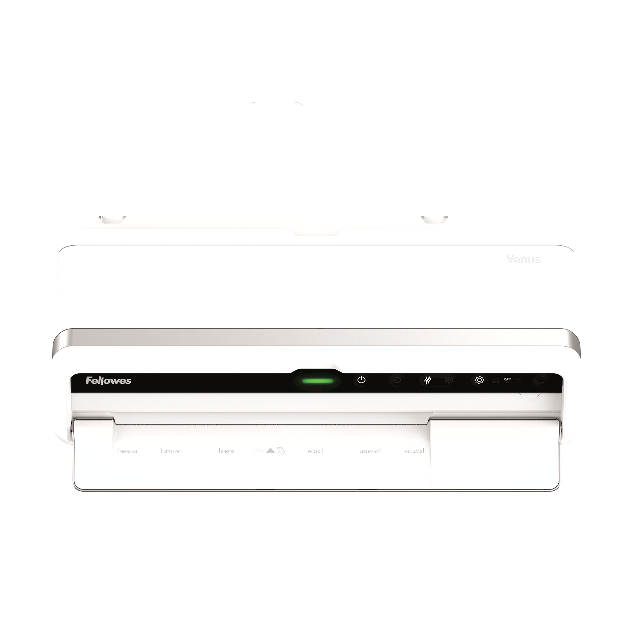 Profesionální laminátor Fellowes Venus vhodný pro použitý ve velké kanceláři umožňující laminaci všech druhů hladkých papírů, včetně fotek od formátu vizitky po formát A3. Komfortní obsluha díky unikátní funkci AutoSense. JIŽ ŽÁDNÉ UŽIVATELSKÉ NASTAVOVÁNÍ PARAMETRŮ. Provozní HODNOTY stroje jsou NASTAVENY AUTOMATICKY po vložení laminovaného dokumentu do stroje.