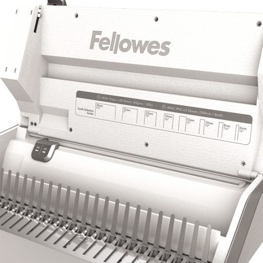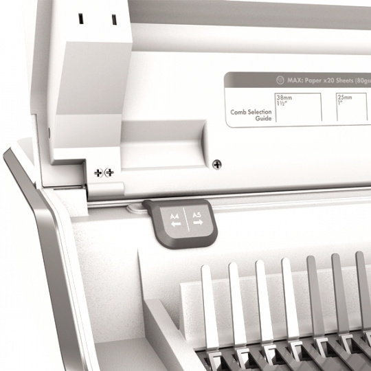 Děrovací kapacita až 20 listů 80 g papíru. Kapacita vazby až 300 listů, maximální průměr hřbetu 38 mm. Je vhodný pro intenzivní kancelářské použití. Vkládání děrovaných listů shora pro snadné setřesení a tím bezchybnou perforaci.