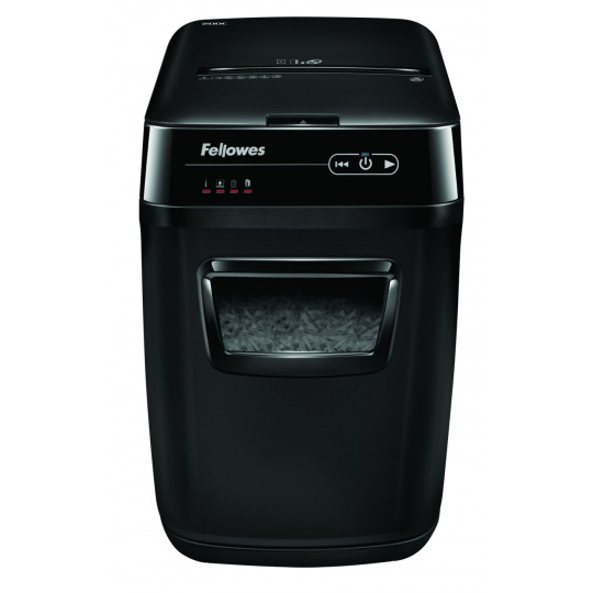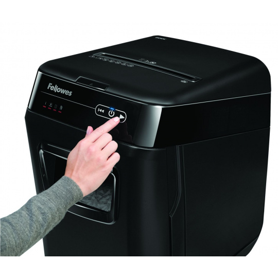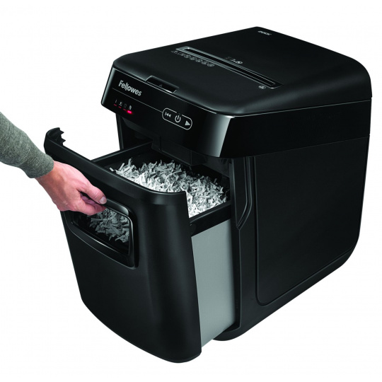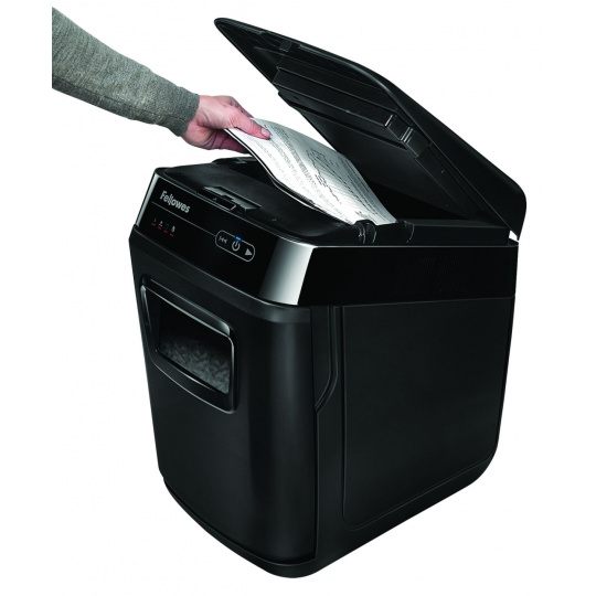 Skartování nikdy nebylo snazší. Revoluční automatická skartovačka značky Fellowes Vás o tom přesvědčí. Jen nalož, zapni a běž. Tento automatický skartovací stroj Vám umožní věnovat se prospěšnějším kancelářským činnostem, nežli je opakované postávání u běžného skartovače. Zařízení je schopno na jeden pracovní cyklus při automatickém podávání skartovat až 200 listů 70g papíru v křížovém řezu 4×38 mm. Skartovač je vybaven vstupní štěrbinou pro ruční podání až 10-ti listů papíru. Výkonný řezací mechanismus zpracuje při automatickém podávání sešívačkou sešité papíry (až 20 sponkou sešitých listů 70g papíru), sponky (až 20 spojených listů). Při manuálním podávání i kreditní karty, CD/DVD.
