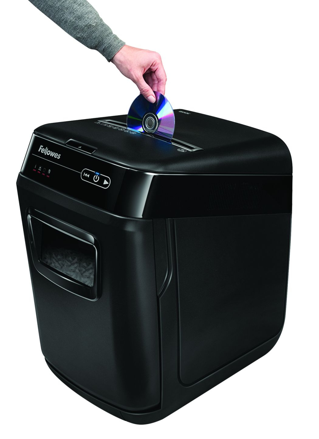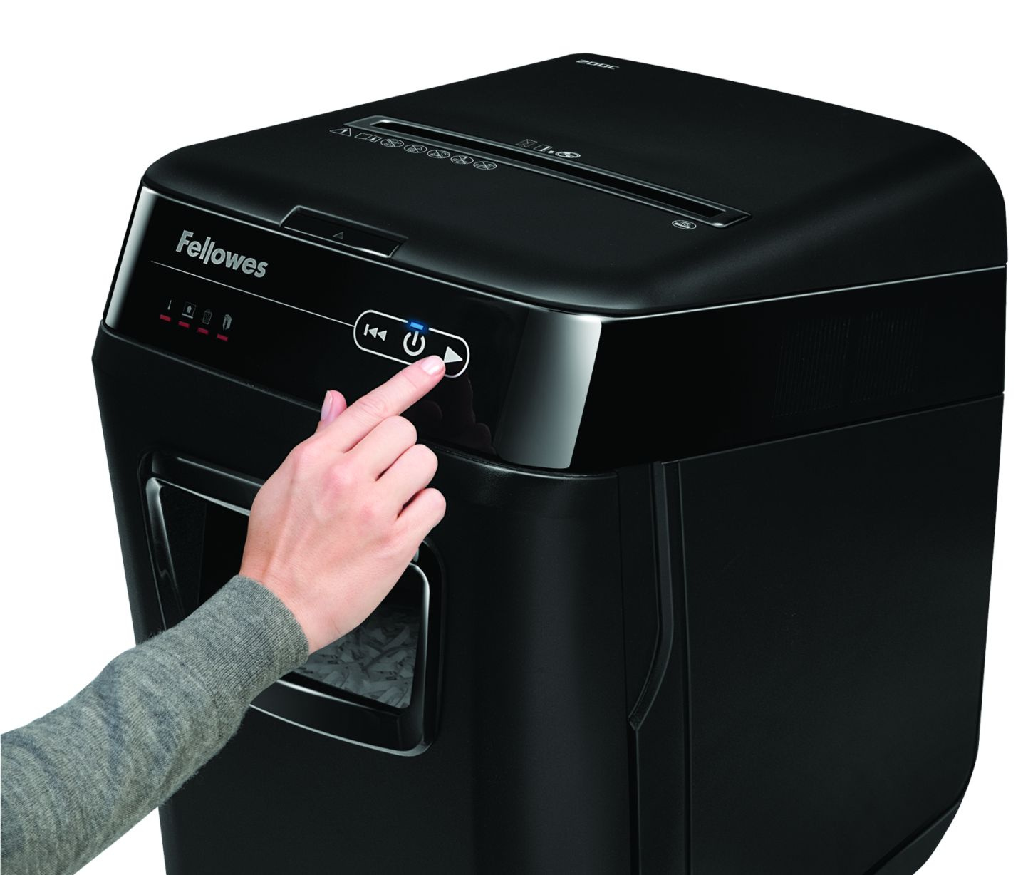 Skartování nikdy nebylo snazší. Revoluční automatická skartovačka značky Fellowes Vás o tom přesvědčí. Jen nalož, zapni a běž. Tento automatický skartovací stroj Vám umožní věnovat se prospěšnějším kancelářským činnostem, nežli je opakované postávání u běžného skartovače. Zařízení je schopno na jeden pracovní cyklus při automatickém podávání skartovat až 200 listů 70g papíru v křížovém řezu 4×38 mm. Skartovač je vybaven vstupní štěrbinou pro ruční podání až 10-ti listů papíru. Výkonný řezací mechanismus zpracuje při automatickém podávání sešívačkou sešité papíry (až 20 sponkou sešitých listů 70g papíru), sponky (až 20 spojených listů). Při manuálním podávání i kreditní karty, CD/DVD.