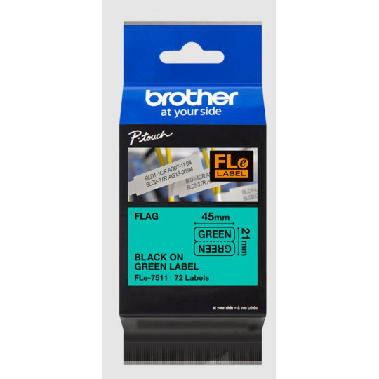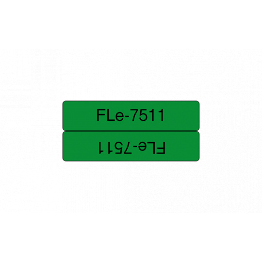 Tato popisovací černo-zelená páska FLe-7511 je ideální jak pro identifikaci kabelů tak pro univerzální použití. Jednoduše vytiskněte text nebo čárový kód na dvě části předřezaného štítku. Připevněte proužek štítku kolem kabelu, poté vezměte vytištěný předřezaný štítek a jednu polovinu přilepte na proužek štítku a poté jej přeložte přes druhou polovinu.