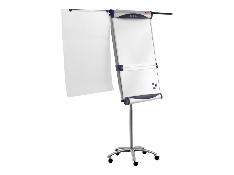 Atraktivní design. Ručně nastavitelná výška. Dvě boční vysouvací ramena. Velmi stabilní základ na pěti kolečkách. Magnetický povrch stíratelný za sucha. - Atraktivní design ve stříbrnomodrém provedení - Magnetický povrch stíratelný za sucha - Možnost nastavení výšky 130 až 190 cm - Posuvné háčky a moderní lišta pro blok papíru běžně používané velikosti - Sklopná odkládací plocha s úchyty pro popisovač - Posuvné pravítko zaručuje rovné psaní textů - Dvě boční vysouvací magnetická ramena rozšiřují předváděcí plochu - Velmi stabilní základ na pěti kolečkách, z toho 3 kolečka mají brzdu - Prodloužená záruka 5 let na povrch tabule - Rozměry tabule flipchartu: 70 x 100 cm