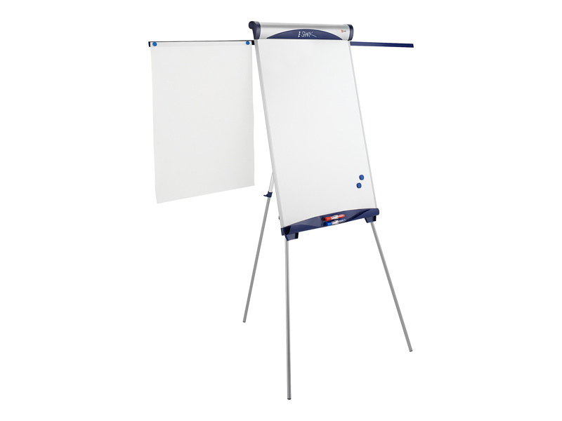 Atraktivní design. Magnetický povrch stíratelný za sucha. Posuvné háčky a moderní lišta. Možnost nastavení výšky. - Atraktivní design ve stříbrnomodrém provedení - Magnetický povrch stíratelný za sucha - Možnost nastavení výšky 110 až 187 cm - Posuvné háčky a moderní lišta pro blok papíru běžně používané velikosti - Odkládací plocha s úchyty pro popisovač - Dvě boční vysouvací magnetická ramena rozšiřují předváděcí plochu - Stabilní základ na třech nohách - Rozměry tabule flipchartu: 68,5 x 100 cm